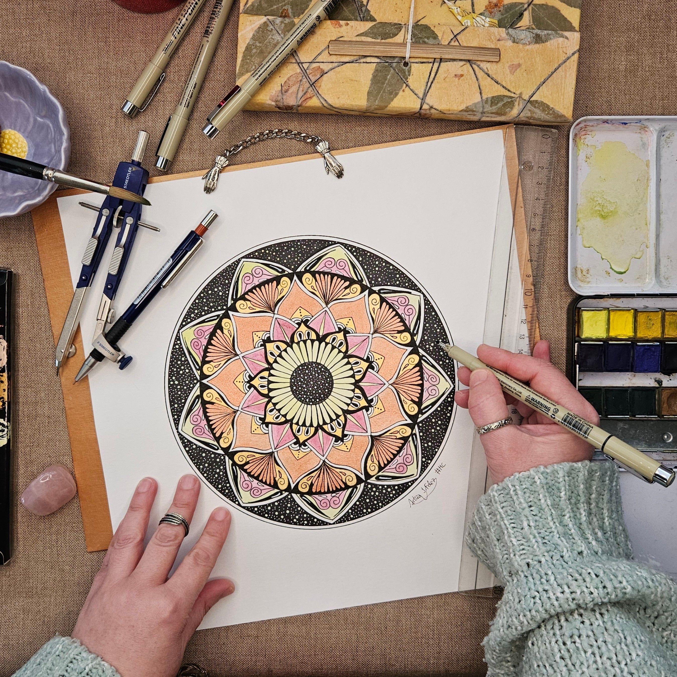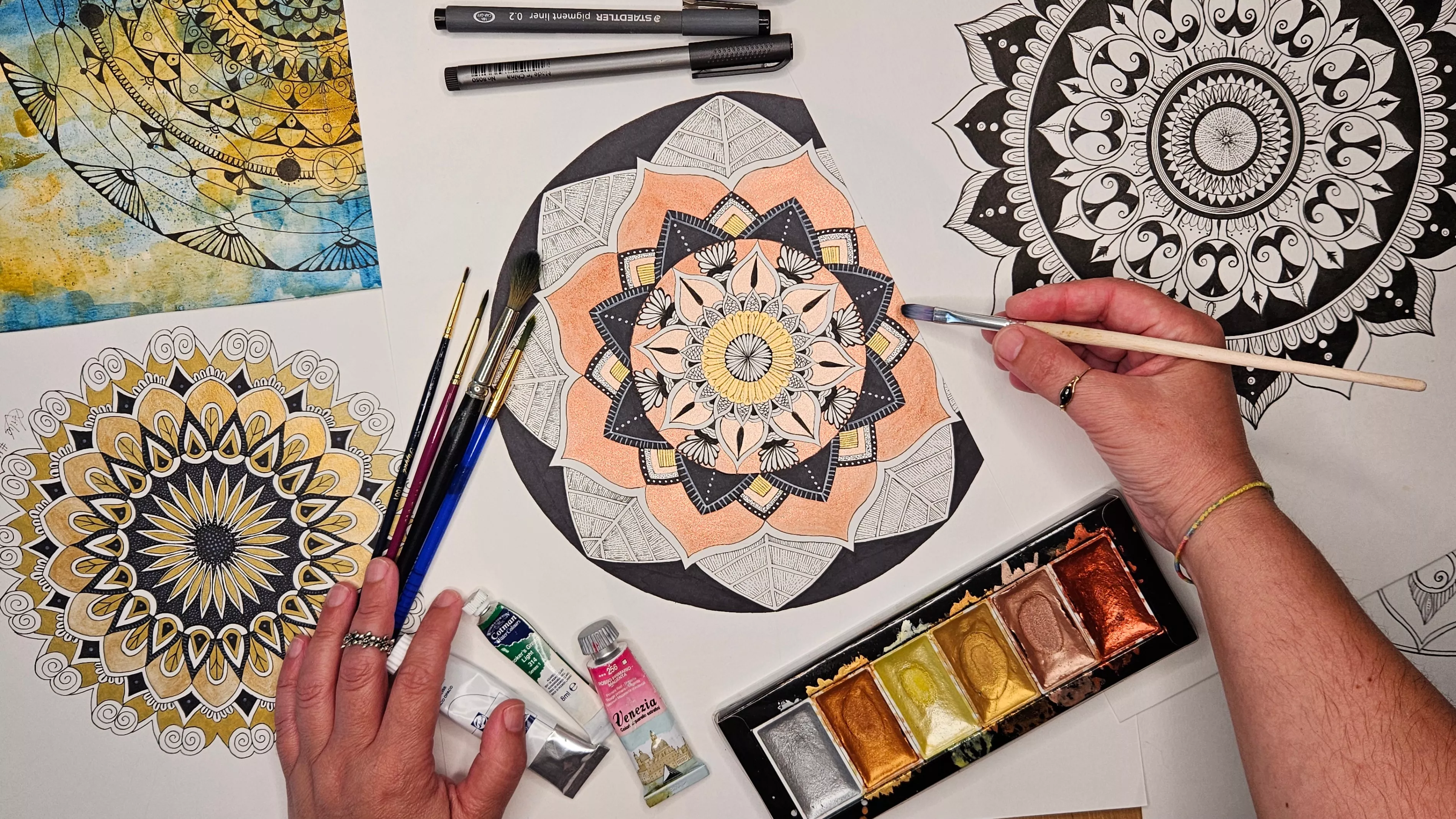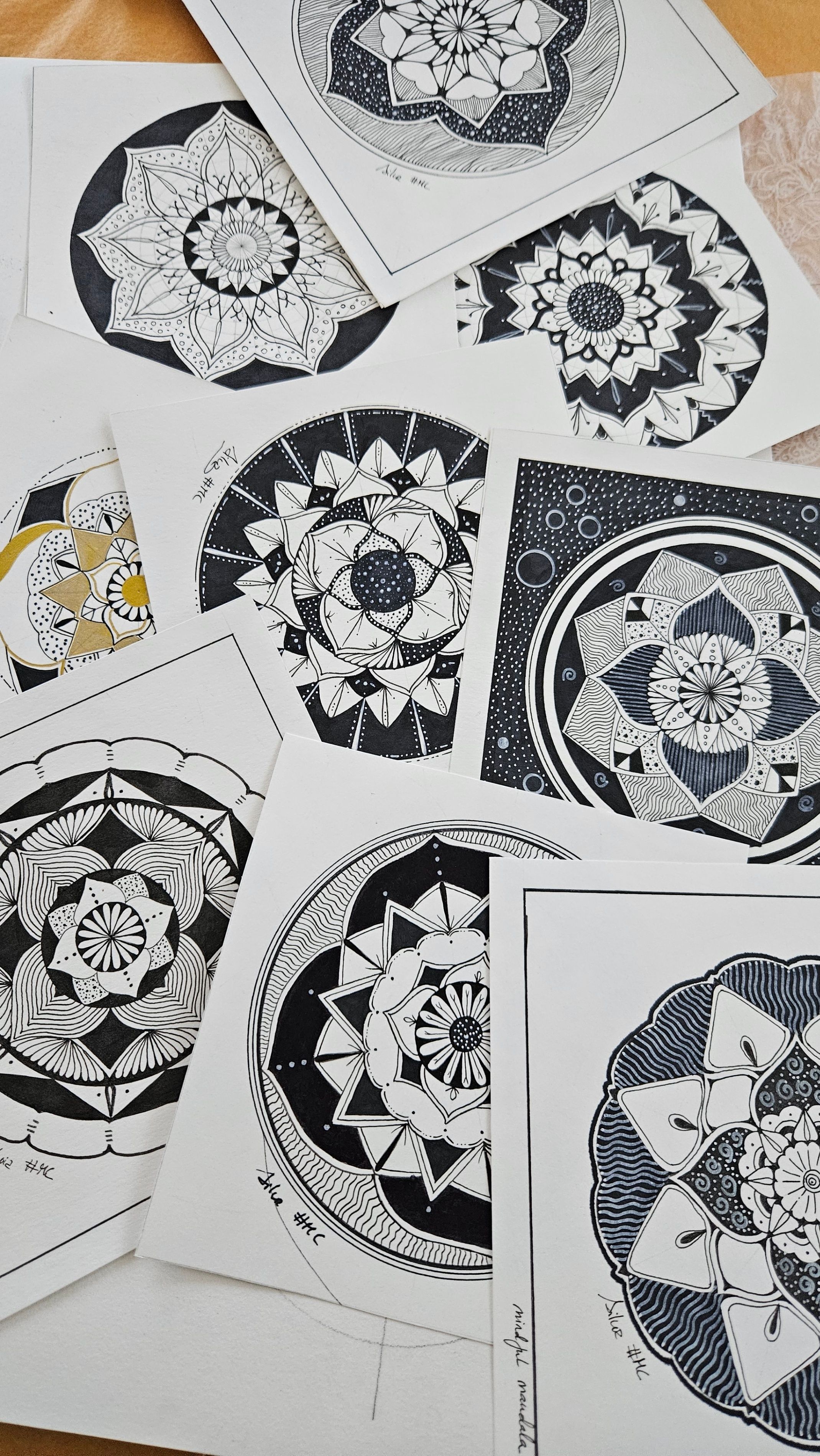 Hace un año decidí que no estaría disponible para vivir una vida sin arte, sin crear cada día, sin compartir mi amor y conocimiento de los mandalas con todas las personas dispuestas a recuperar su calma mental y creatividad a través del arte de los mandalas y aquí estoy!