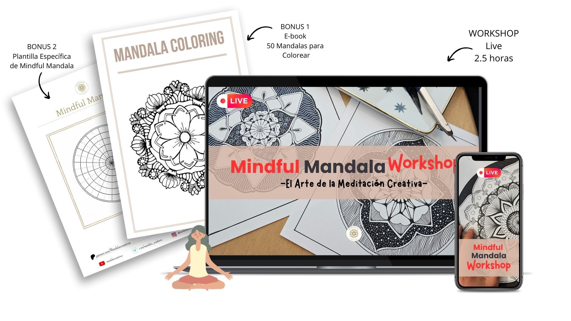 ILa grabación de los workshop anteriores para que practiques en directo y en tiempo real una sesión Mindful Mandala y experimentes por tí misma los beneficios del Método.